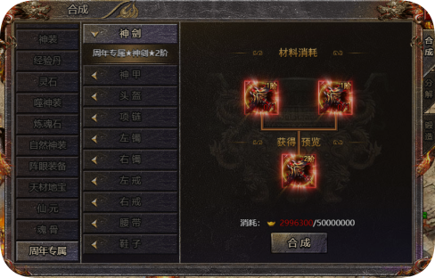 5、周年专属装备可在【合成-周年专属】中合成升级